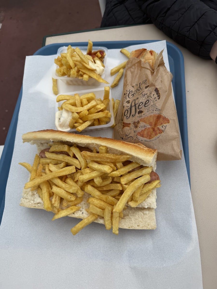 Cadre idyllique Avec une vue imparable sur le couché de soleil ! Frite fraîche délicieuses ! Le hot dog est fait avec une véritable baguette ! Merci au gérant pour sa bonne humeur
